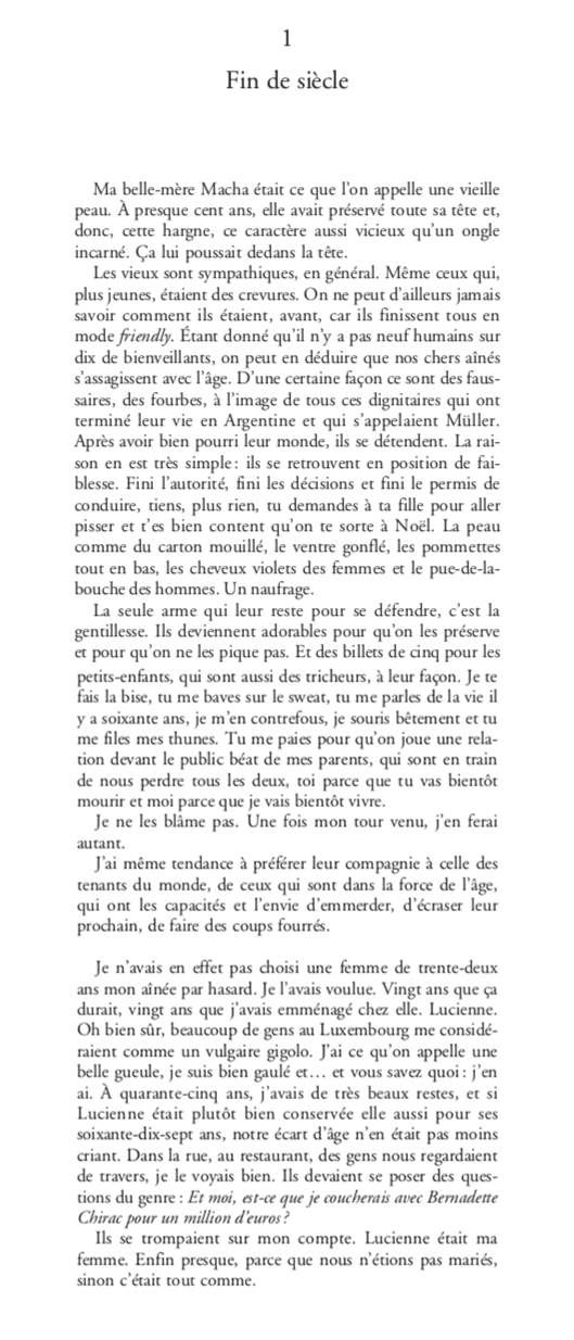 “Emmanuel Macron et moi sommes nés la même année. Nous nous sommes croisés, à l’époque où il était Ministre de l’Intérieur. Enfant, il voulait être romancier, il est devenu président ; je voulais être Napoléon, je suis devenu romancier.”